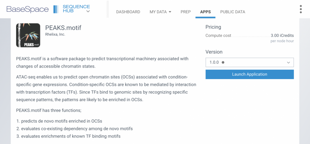 Rhelixaは次世代シーケンサーの製造および供給のリーディングカンパニーであるイルミナ社が運用するクラウドシステム「BaseSpace Sequence Hub」上に、独自のエピゲノム解析パイプラン「PEAKS.motif」を実装し(※詳細は下記)、テスト運用を開始しました。実稼働に向け、多くの方のご意見を募集しています。本パイプライン「PEAKS.motif」は、BaseSpace Sequence Hub上のテストエリアにあり、弊社からの招待制となります。テスト稼働期間中の使用料は無料となっていますので、ご興味のある方はinfo@loc-test.sakura.ne.jpまでご連絡ください。