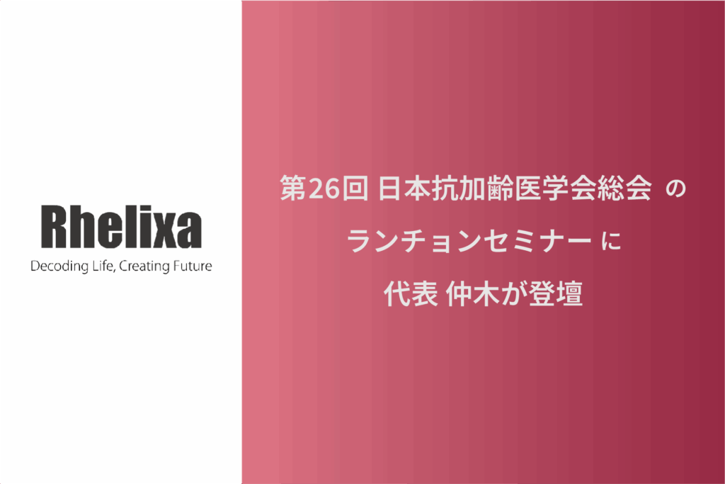 2026年6月26日(金)〜2026年6月28日(日)に開催される「第26回日本抗加齢医学会総会」において、初日となる6月26日(金)に、株式会社FRACORAとの共催によるランチョンセミナーに当社代表の仲木が登壇いたします。