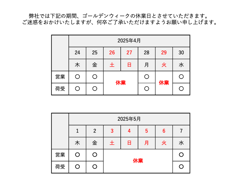 ゴールデンウィーク休業についてのお知らせ