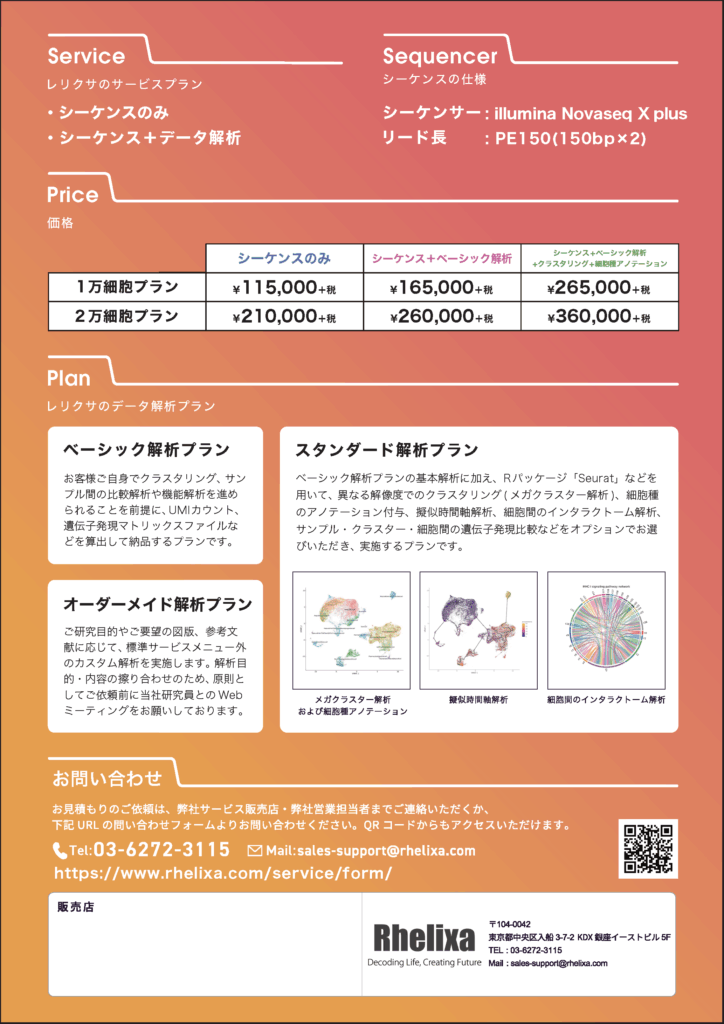 illumina社から発売されたillumina Single Cell 3′ RNA Prepで調製されたライブラリーからシーケンスおよびインフォマティクス解析を行うサービスを開始いたしました。