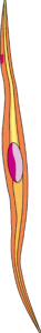 筋肉にある細胞は、伸び縮みしやすいように、細長い形となっています。