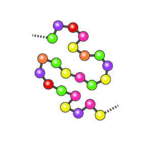 タンパク質は、いろいろな種類のアミノ酸が数多く鎖状につながったものです。